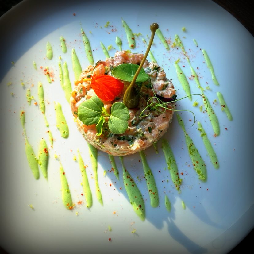 Un tartare de saumon finement taillé, associé à la rondeur d’un avocat bien mûr et relevé par la vivacité du citron vert… un équilibre tout en finesse entre douceur et fraîcheur, pour une entrée légère et pleine de soleil 🥑🐟