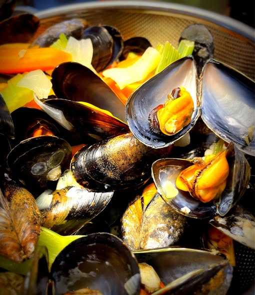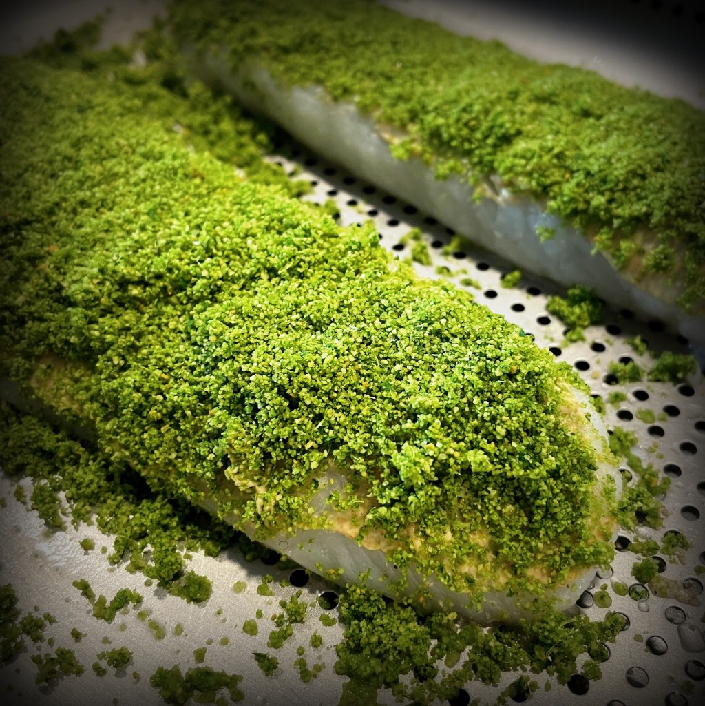 ✨ Dos d’aiglefin en croûte d’herbes aux moules et à la moutarde, légumes taillés et mousseline de pomme de terre✨✨