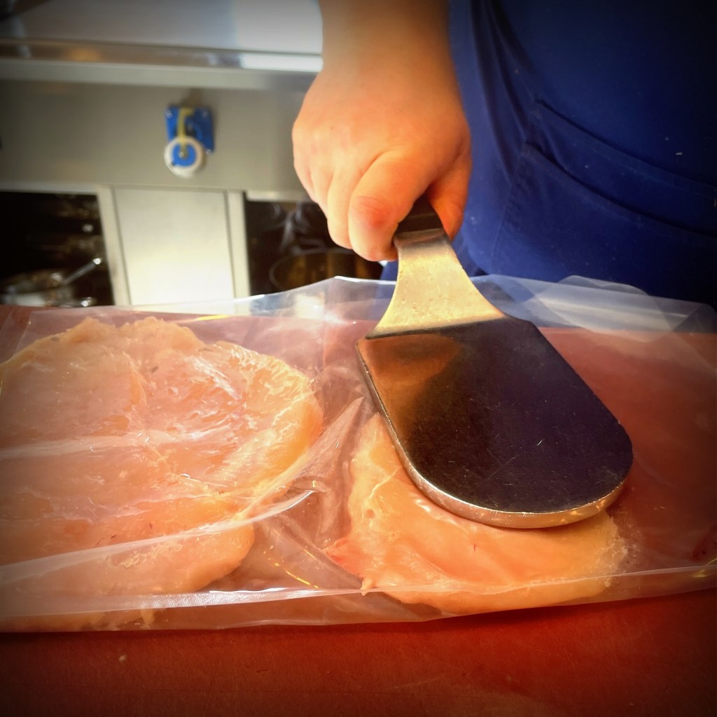 Le tout est gratiné au parmesan, juste ce qu’il faut pour apporter du croustillant et une belle saveur fromagère, puis nappé d’un jus de veau riche et parfumé.