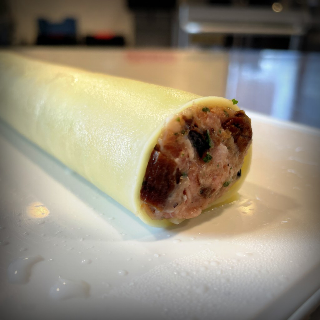Cannelloni de veau aux champignons des bois, parfumé à la truffe, gratin de parmesan et jus de veau – (24€*)