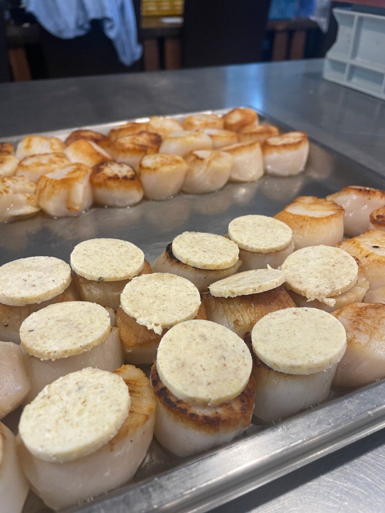 Noix de St-jacques en croûte de comté et noix,