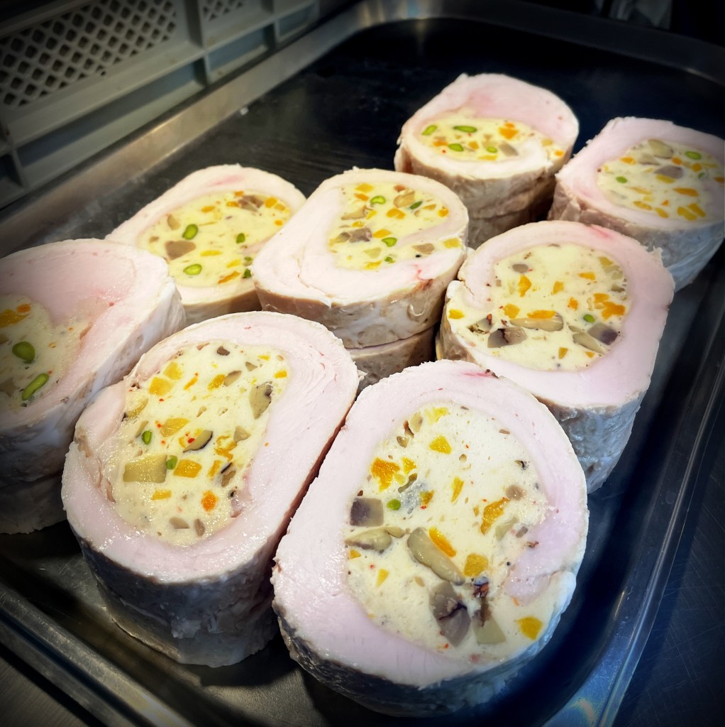 Un plat festif et réconfortant : un filet de dinde fondant, farci d’un mélange gourmand de butternut, châtaignes et abricots, pour un parfait équilibre entre douceur et parfum.