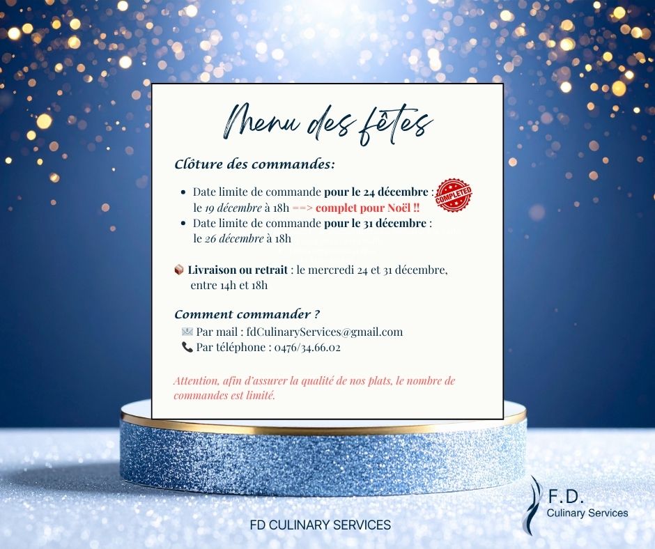 Menu des fêtes de fin d’années 2025